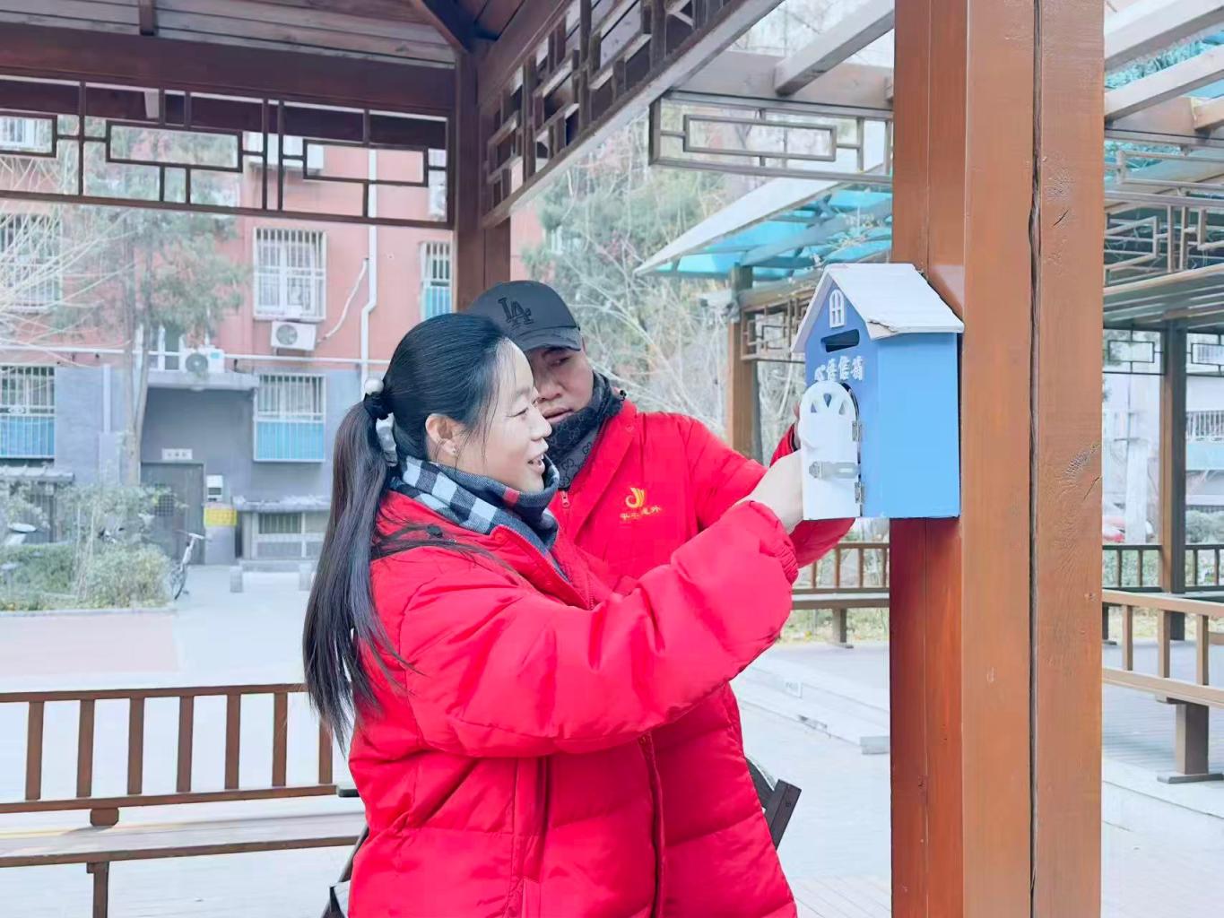 明朗里小区9号楼和10号楼之间有一个花圃,花圃北侧、东侧建有长长的廊亭,廊亭下还贴心性装配了座椅。其中一个廊柱上就吊挂着造型别致的“心语”信箱。12月10日下昼,大望家园社区秘书李宏伟和社区管事站站长田昀霖来到这里,从信箱里取出十余份居民留言。